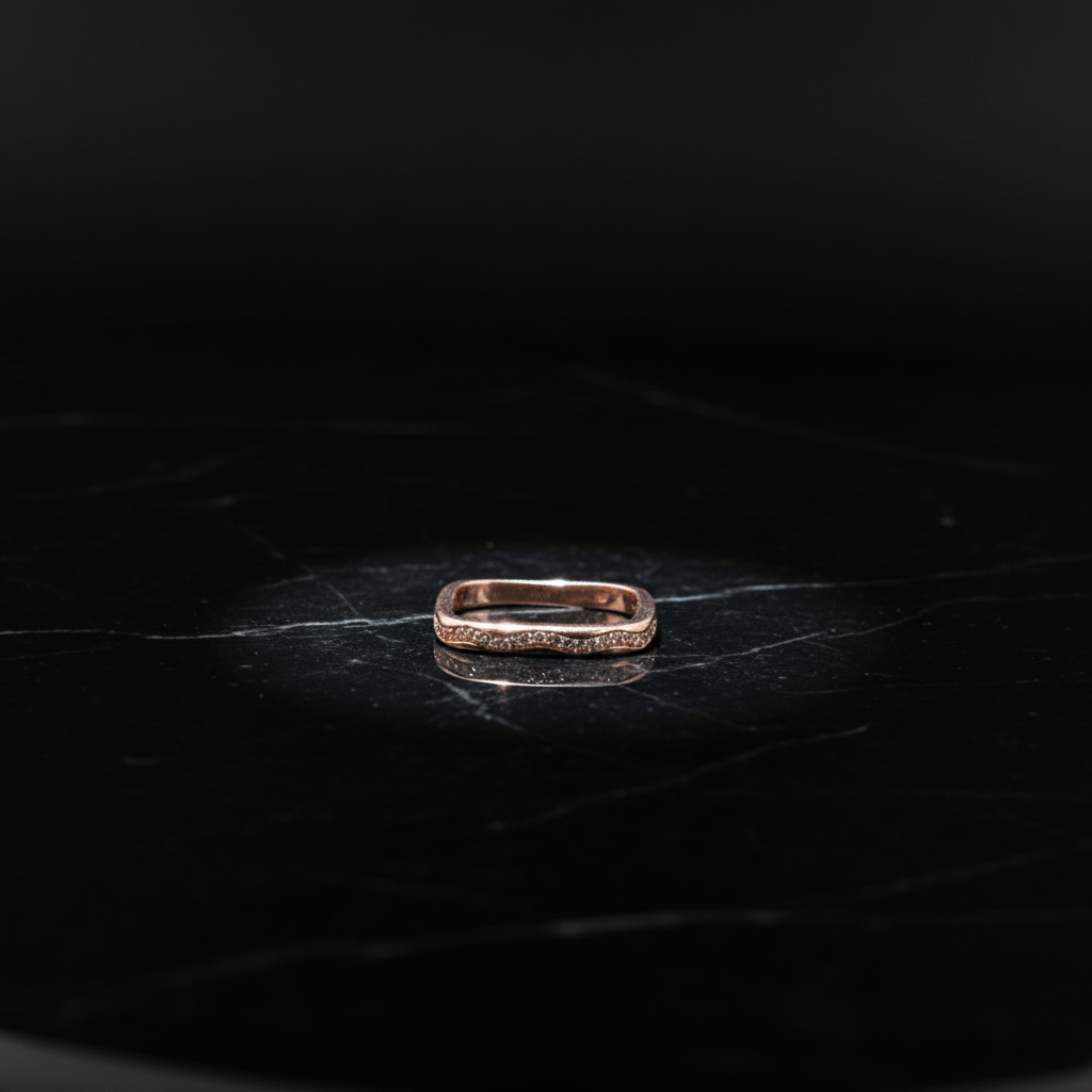 Black Stone Cat-Ear Silver Ring | Minimal Rose-Gold Design With Maximum Personality