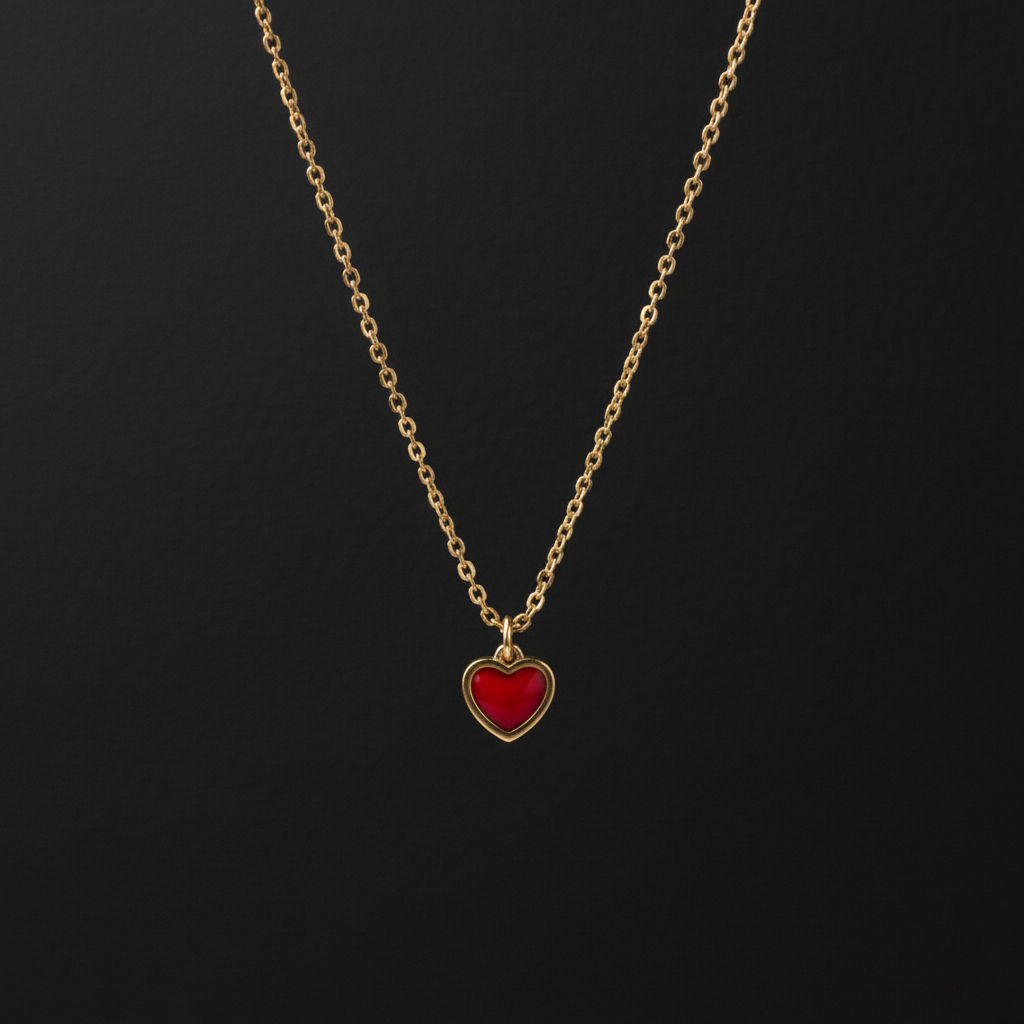 Elegant Red Enamel Heart Necklace | 925 Silver Gold Plated Pendant