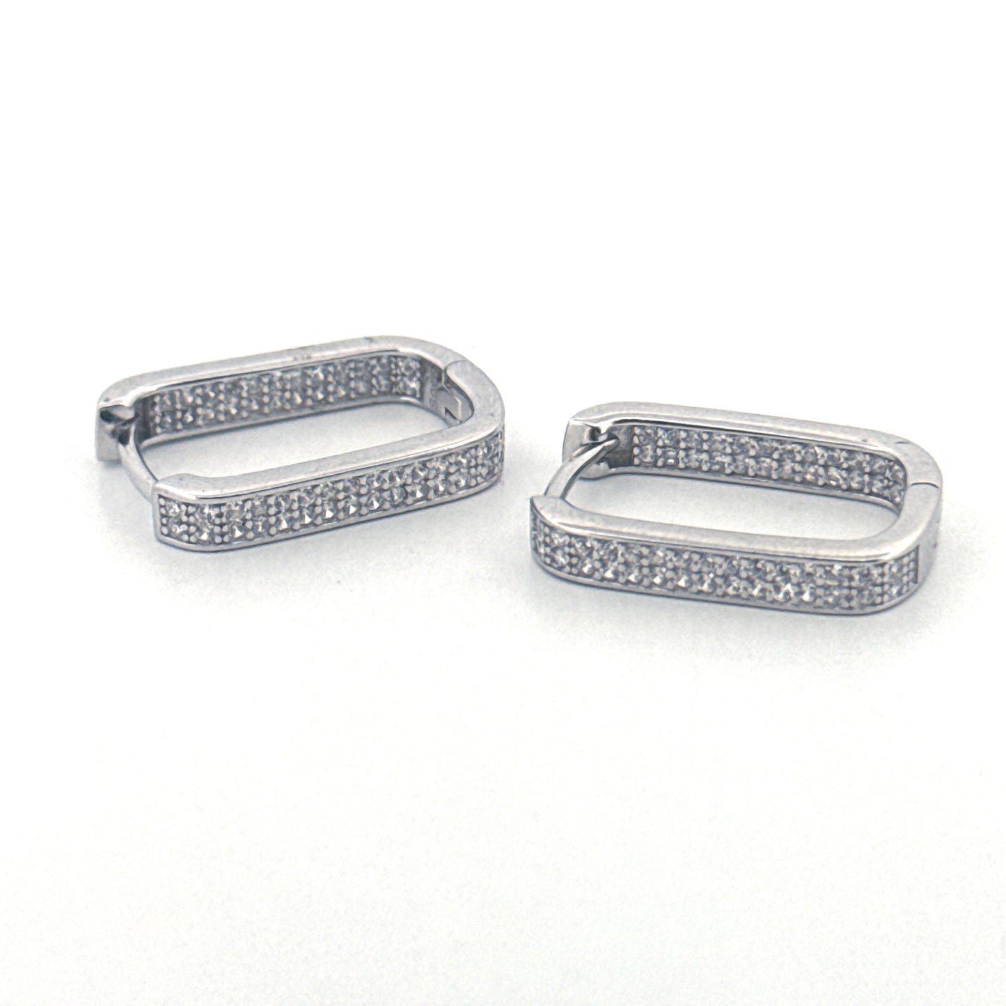 Elegant Silver Square Earrings | Rhodium-Plated Long Bali with Sparkling Zircon