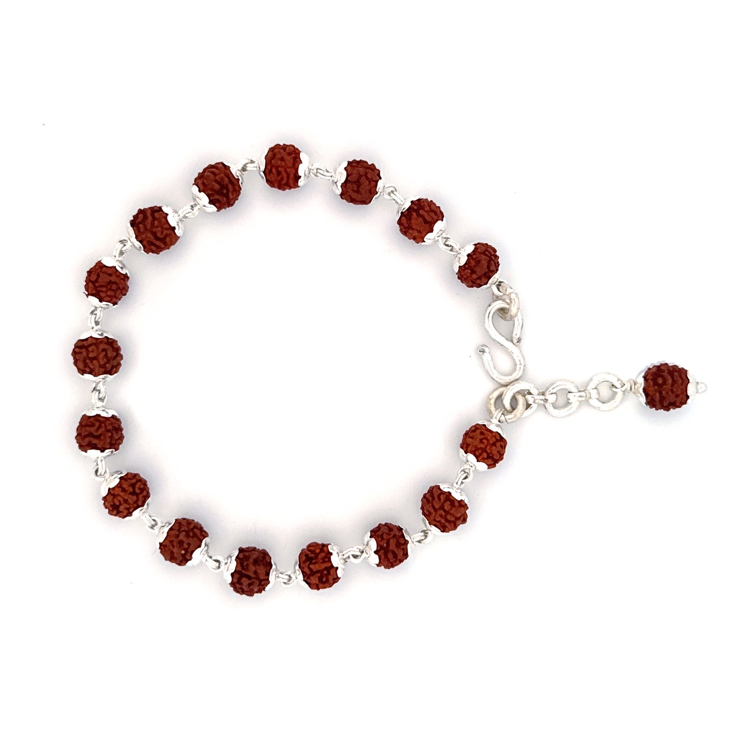 Handcrafted bracelet featuring natural Rudraksh beads linked with pure 99.9% silver.