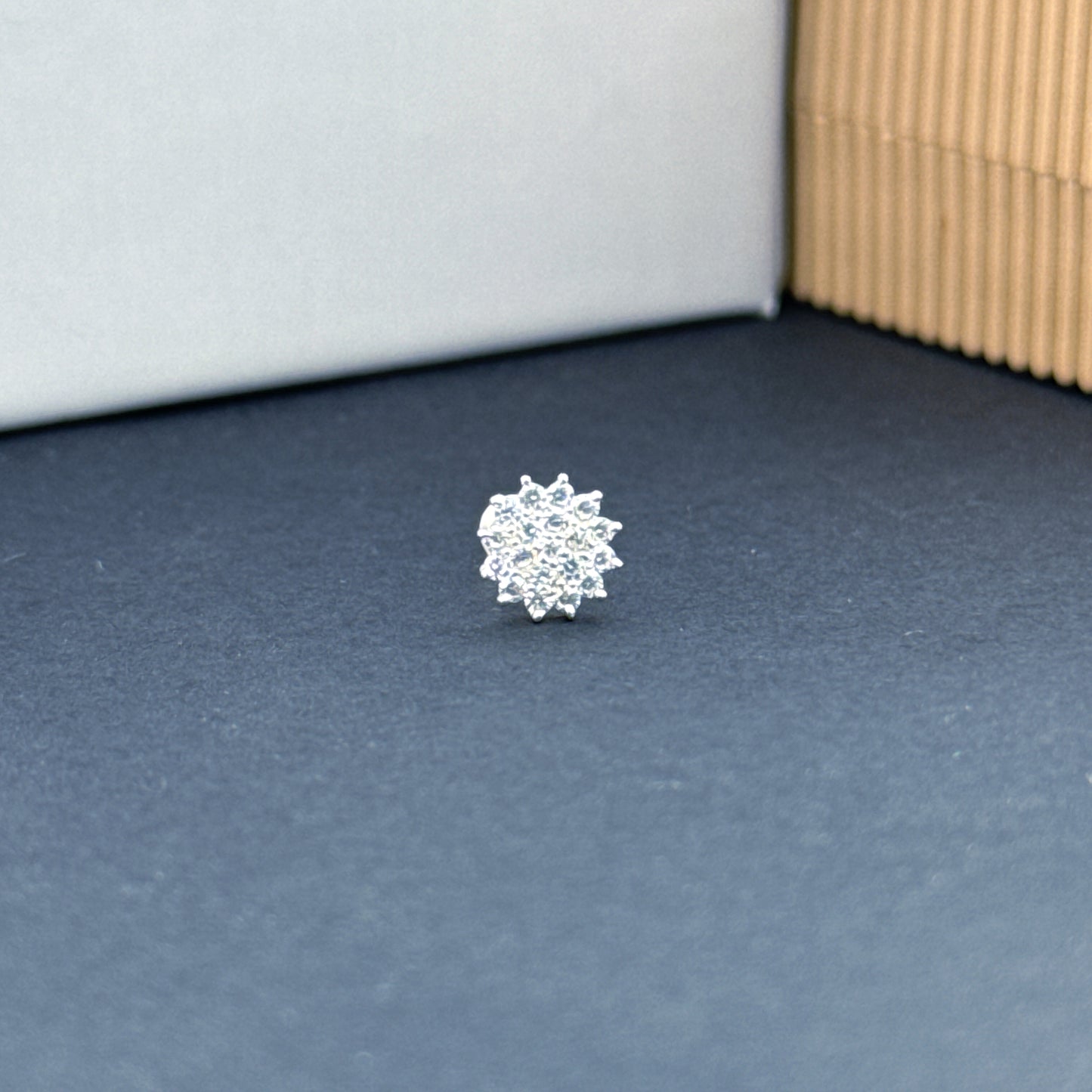 Premium AD Stone Nose Pin | Rhodium-Plated Real Silver Nose Stud