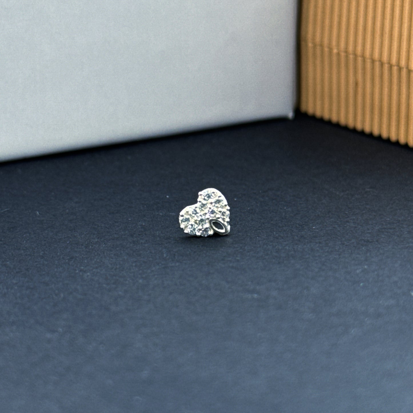 Premium Silver Heart Nose Stud | Real Silver Nose Pin with White AD Stone