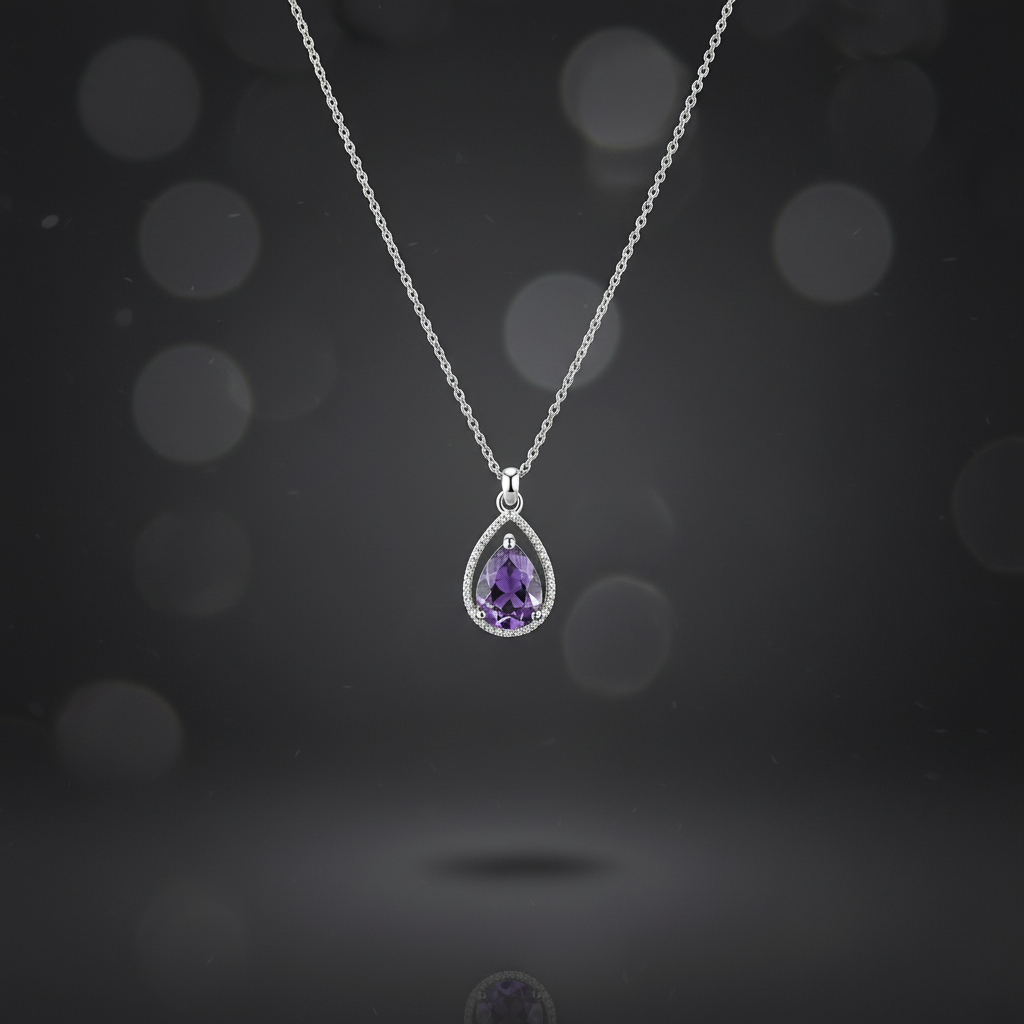 A sleek and elegant amethyst pendant silver necklace crafted in 925 sterling silver with premium rhodium plating. Lightweight, anti-tarnish, and perfect for office wear, daily styling, or gifting.