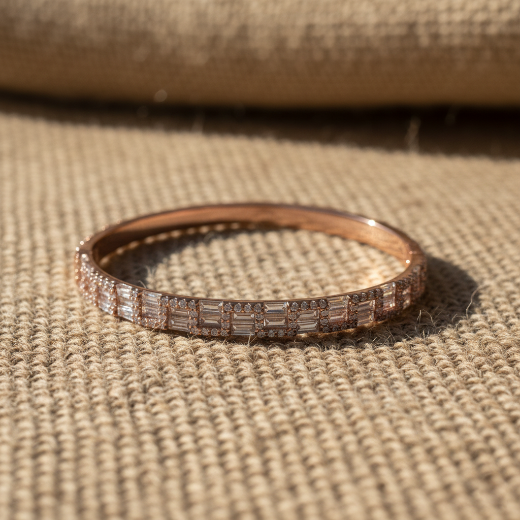 Rose Silver Bangle with white stones | Sleek 925 Silver style