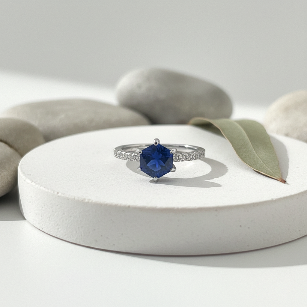 Sparkling Blue & White Stone Silver Ring | Rhodium-Plated Engagement Silver Ring