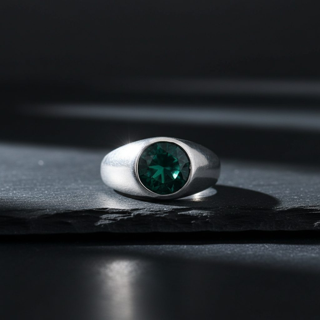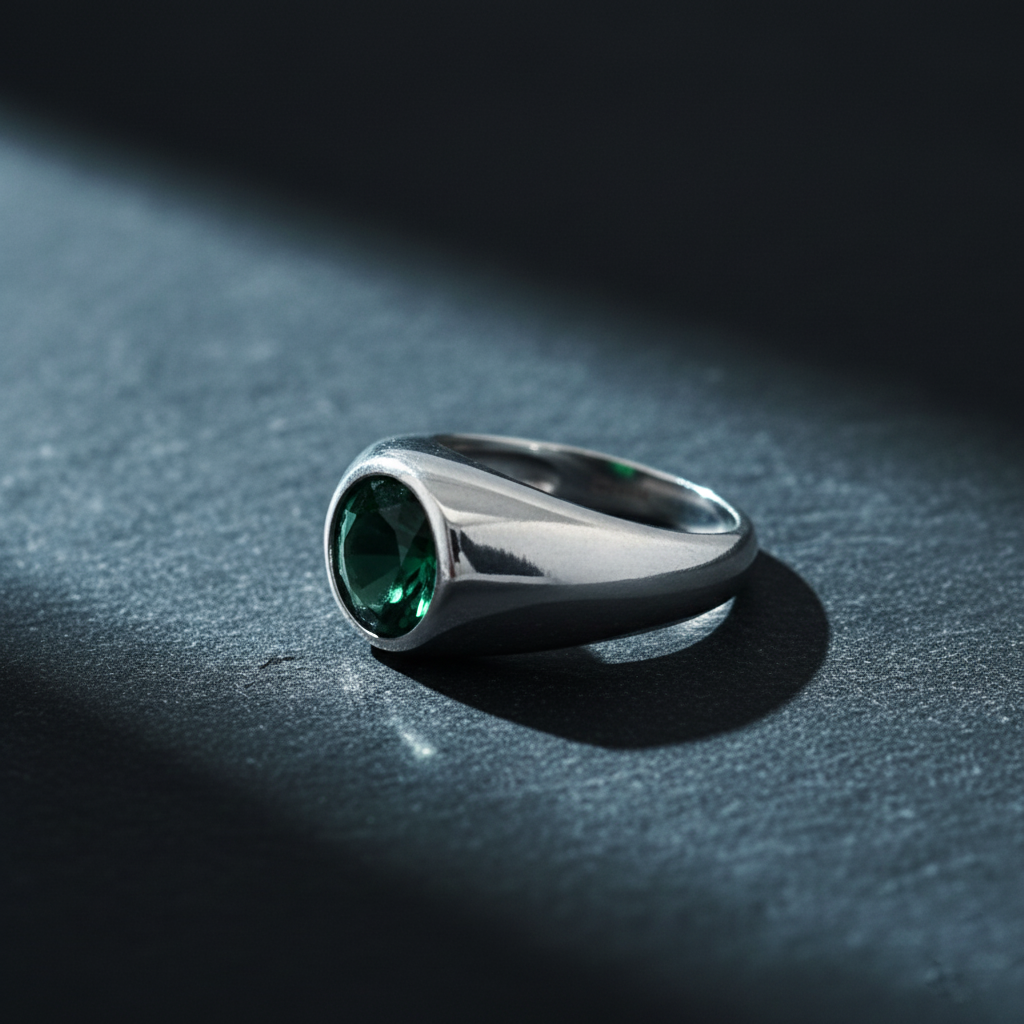 Add Single Stone Ring for Men in 925 Silver | Green Stone Classic Silver Ring to the cart