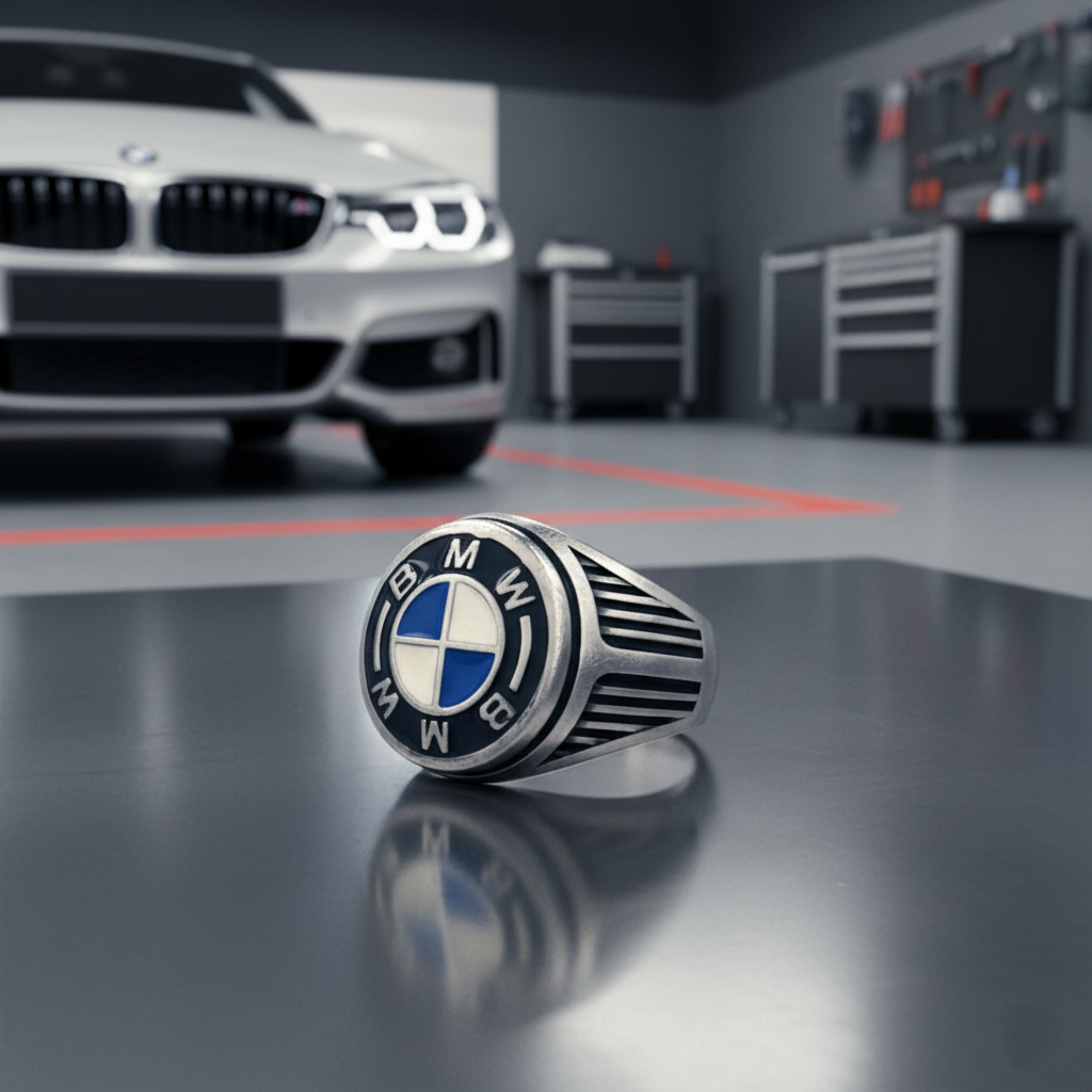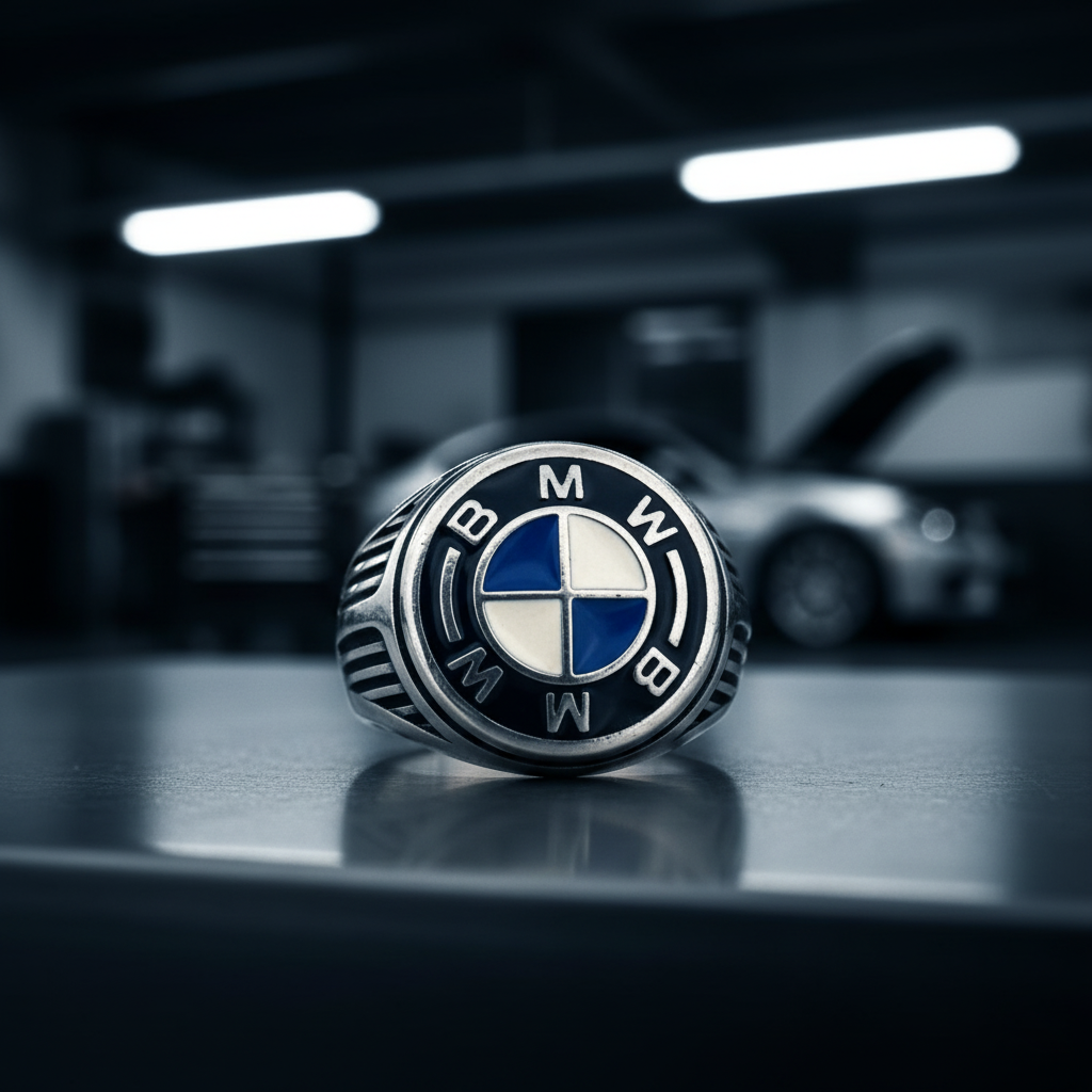 Add Mens Silver Signet Ring with BMW Logo – Car Logo Ring in 925 Tarnish Finish to the cart