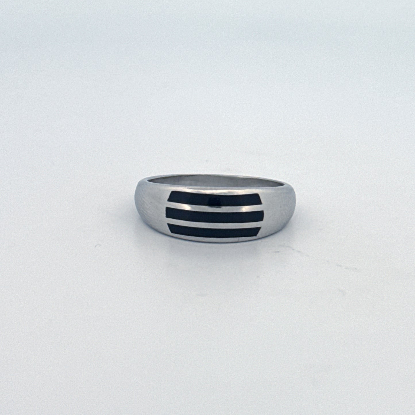 Add Men's Silver Band Ring | Rhodium-Plated Italian Design with Bold Black Enamel Detailing to the cart