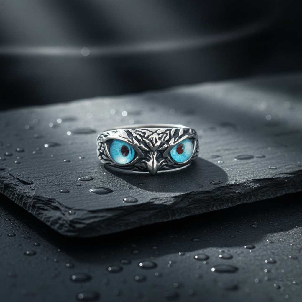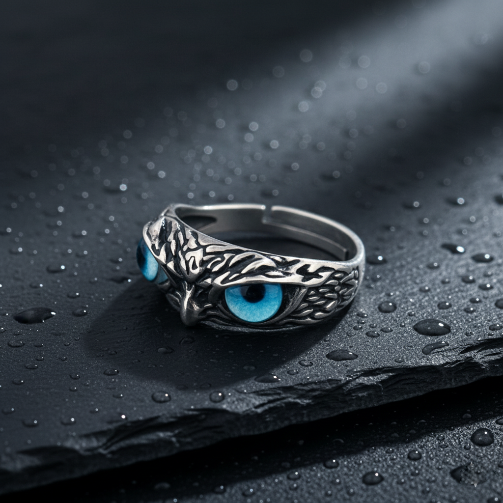 Add Silver Owl Ring in 925 Sterling Silver | Adjustable Owl Eye Ring for Men to the cart