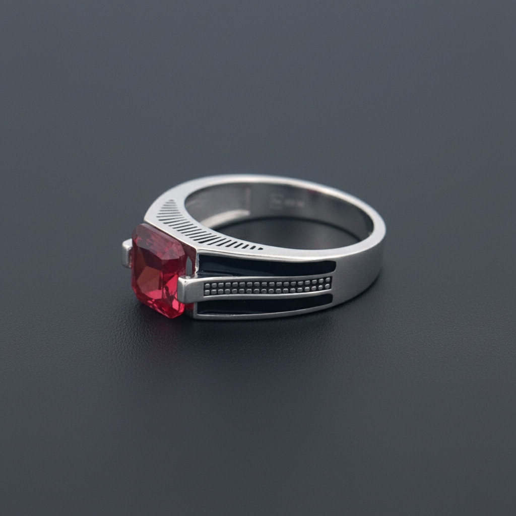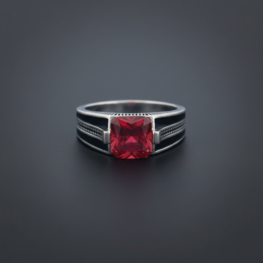 Add Red Stone Silver Ring for Men – Premium Turkish Silver Ring with Black Enamel Detailing to the cart