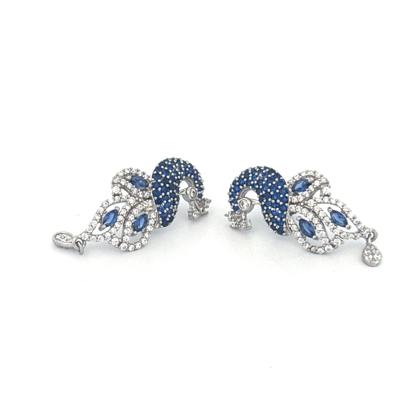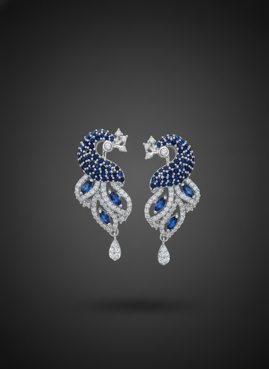 Peacock Design Earrings Silver | Premium Synthetic Sapphire & Zircon Stud Earring