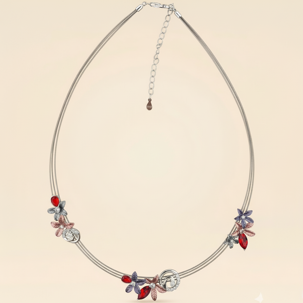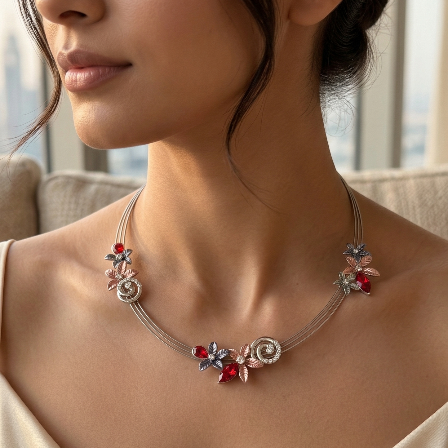 Add Synthetic Red Stone & Enamel 925 Silver Collar Necklace | Multi-colour Festive Glamour For Gifting to the cart