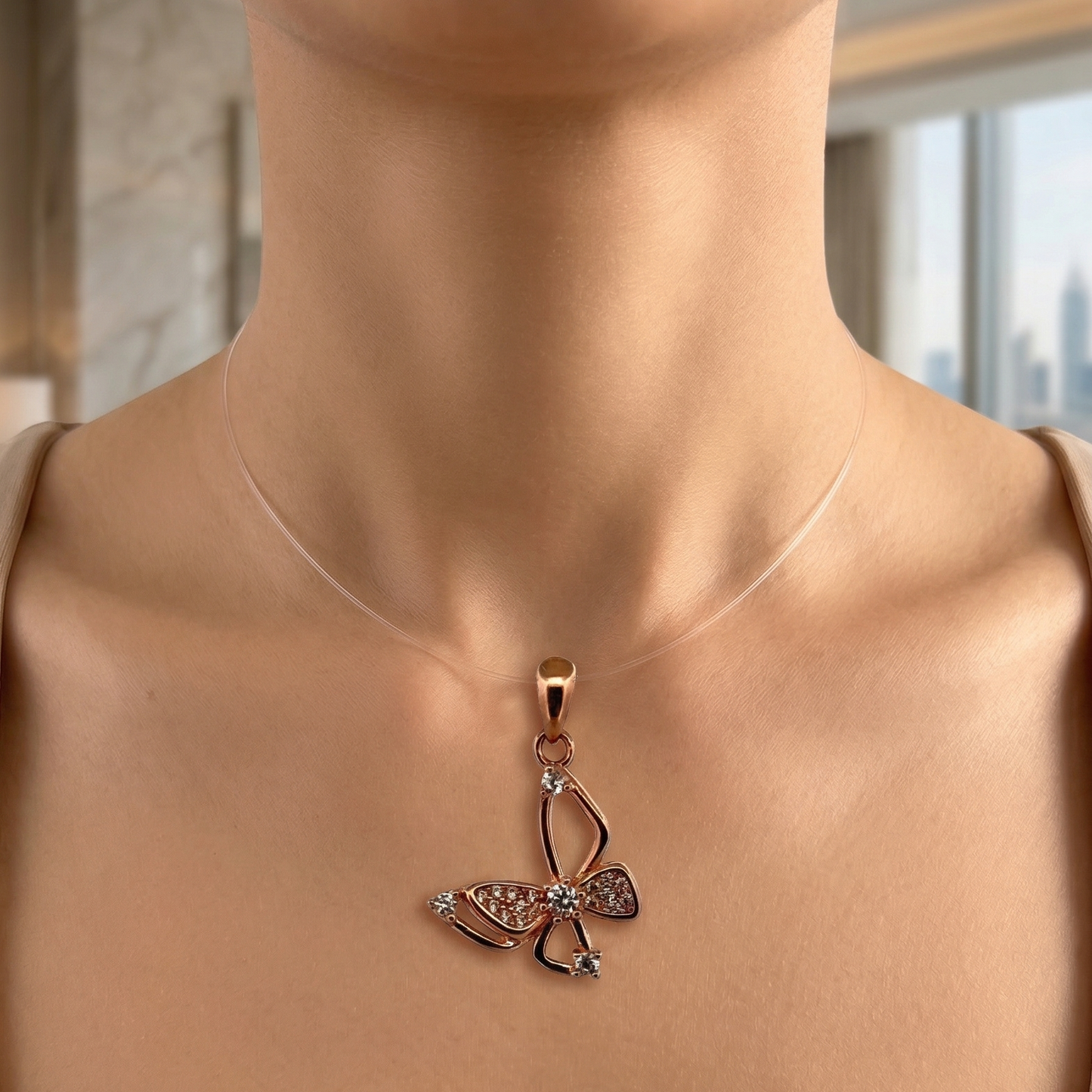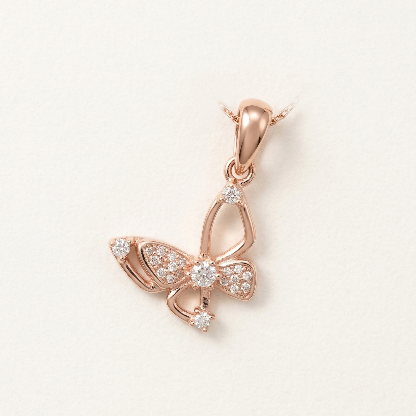 Add White AD Open Butterfly 925 Silver Pendant | Rose Gold Minimal Charm For Daily Wear to the cart