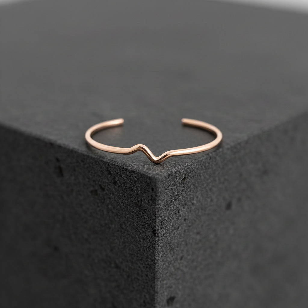 Add Plain Rose Gold 925 Silver Wave Cuff Bangle | Whisper-thin Minimal Elegance to the cart