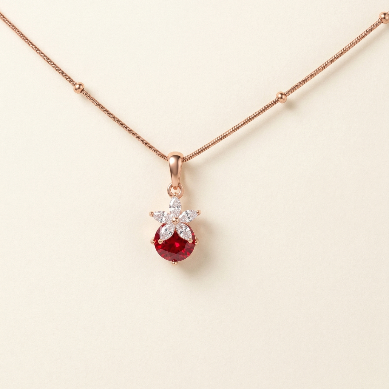Add Pink AD & White AD Floral Drop 925 Silver Pendant | Rose Gold Classic For Festive Gifting to the cart