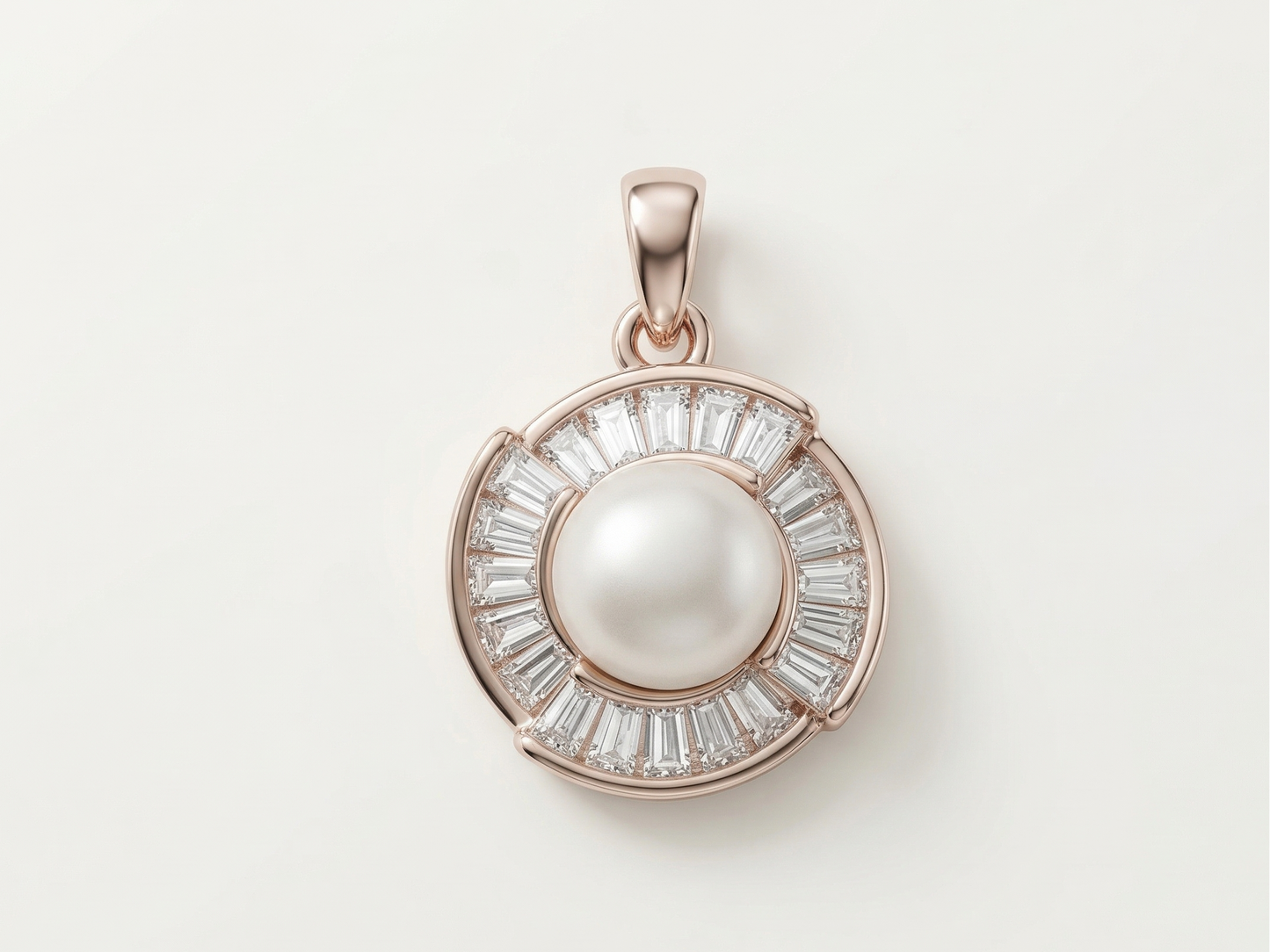 Add Pearl & Baguette AD Halo 925 Silver Pendant | Classic Rhodium Elegance For Office Gifting to the cart