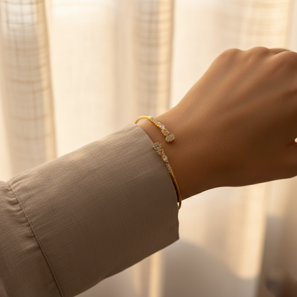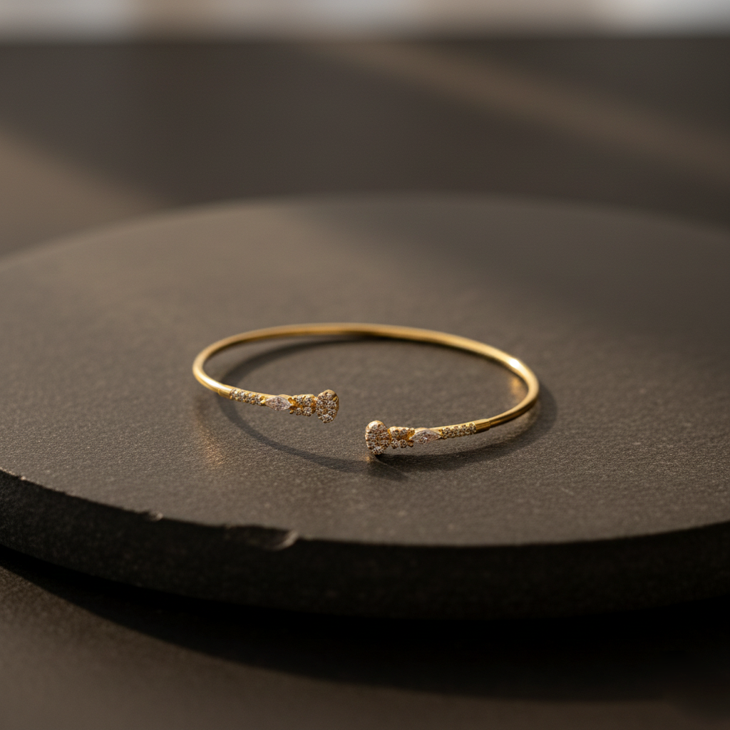Add White AD Tapered Gold 925 Silver Bypass Kada | Classic Open-Cuff For Festive Gifting to the cart