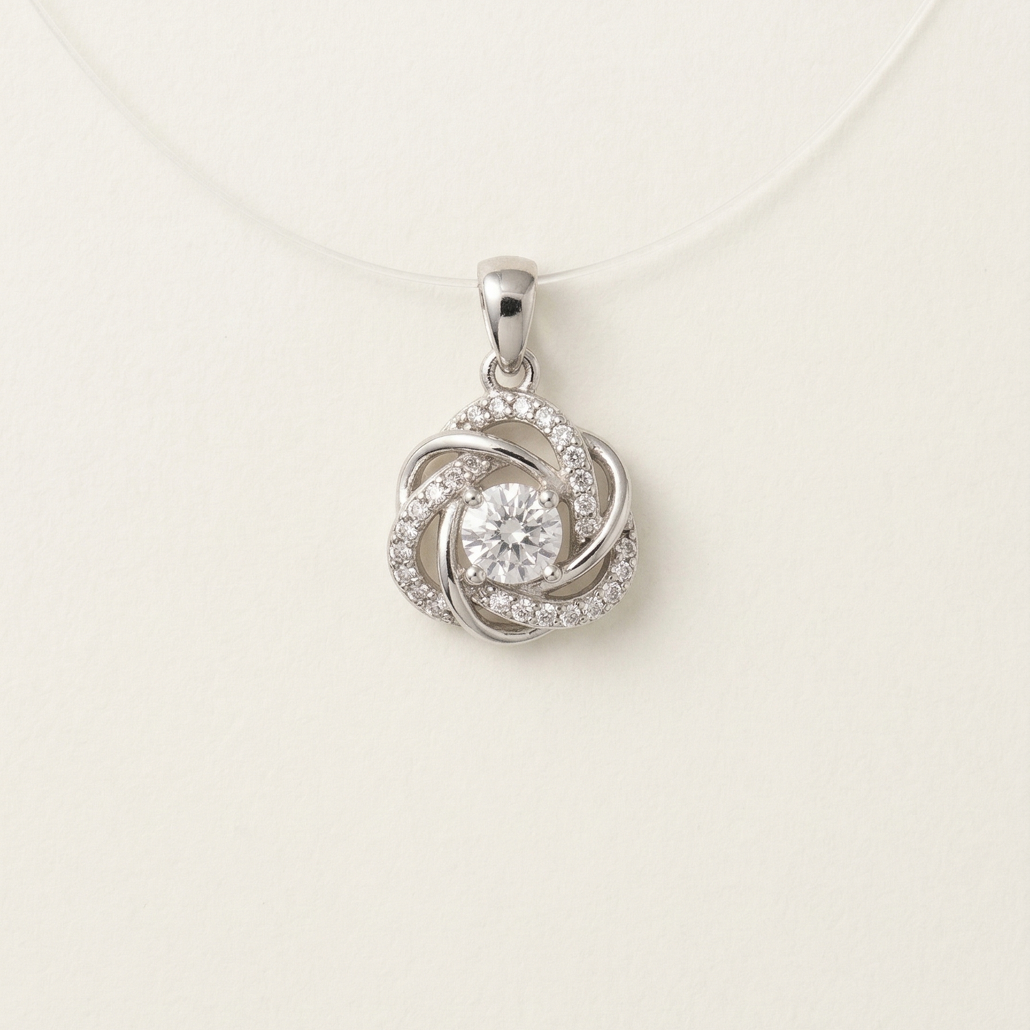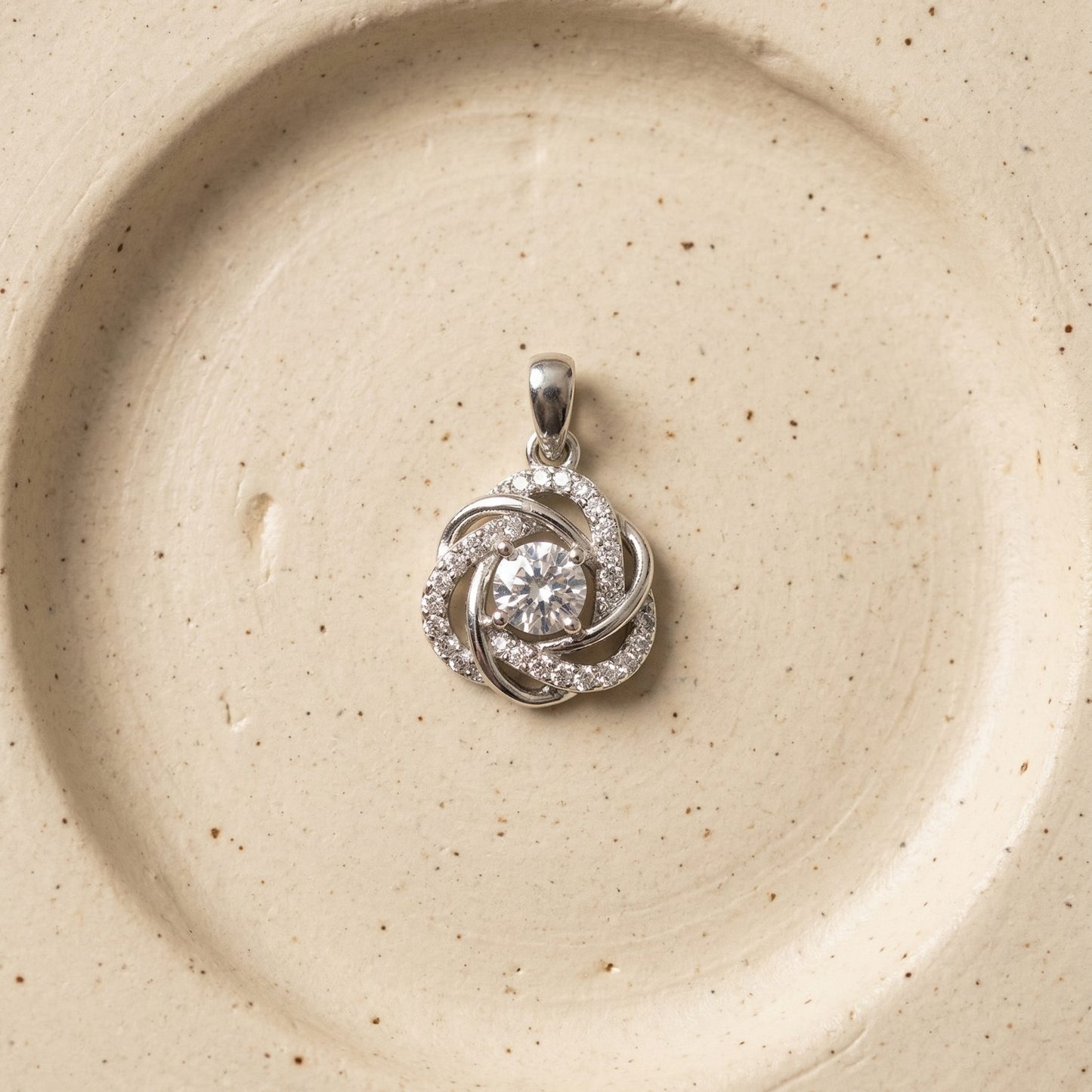 Add White AD Solitaire Love Knot 925 Silver Pendant | Rhodium Swirl Charm For Daily Gifting Wear to the cart
