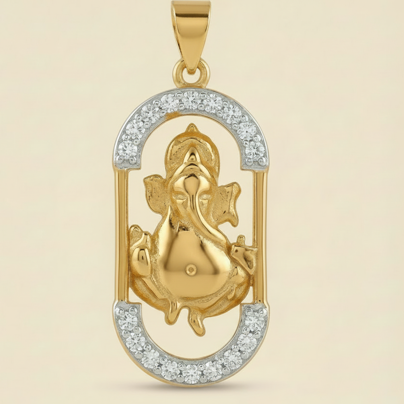 Add Ganesha Gold-plated 925 Silver Oval Halo Pendant | AD-studded Festive Charm For Occasions to the cart