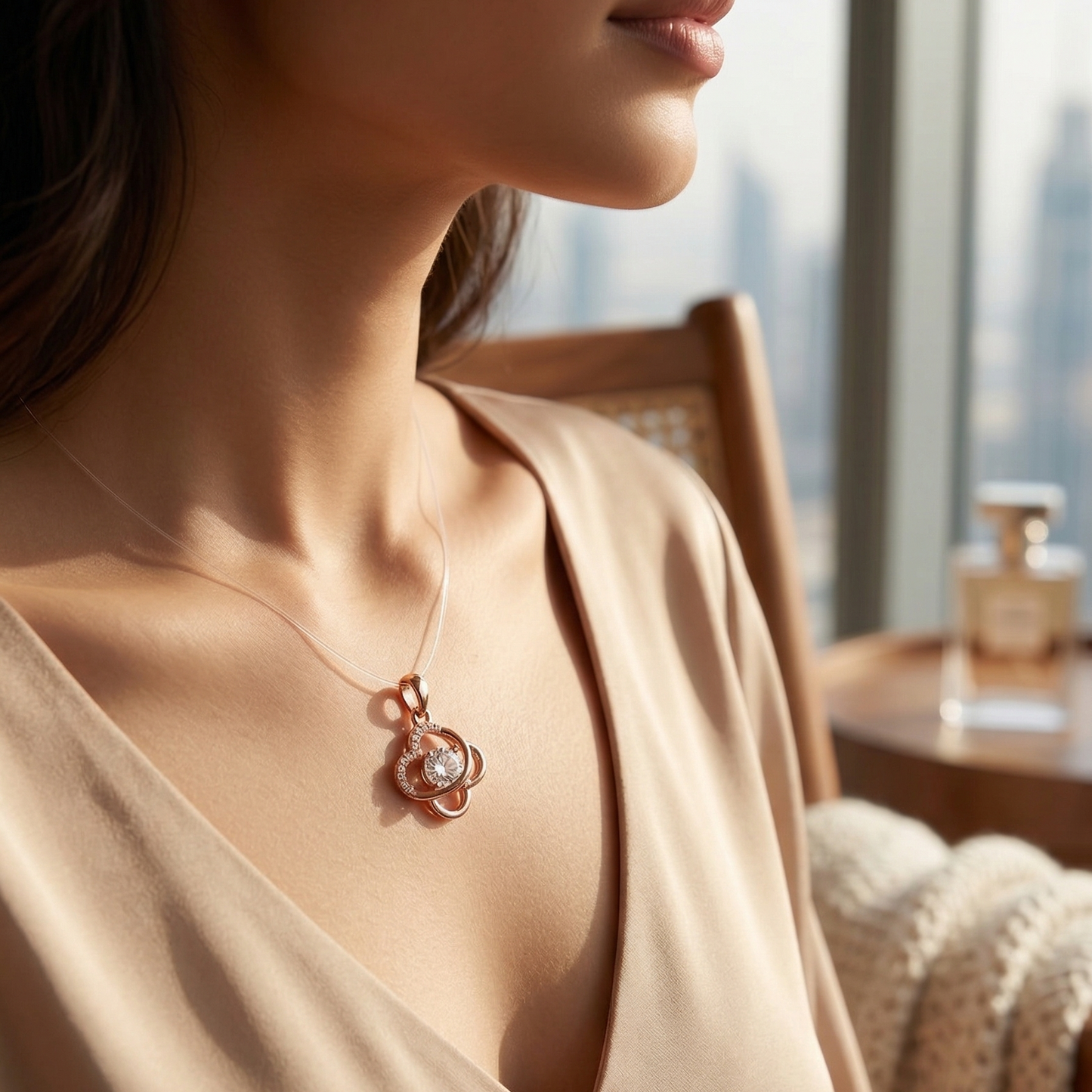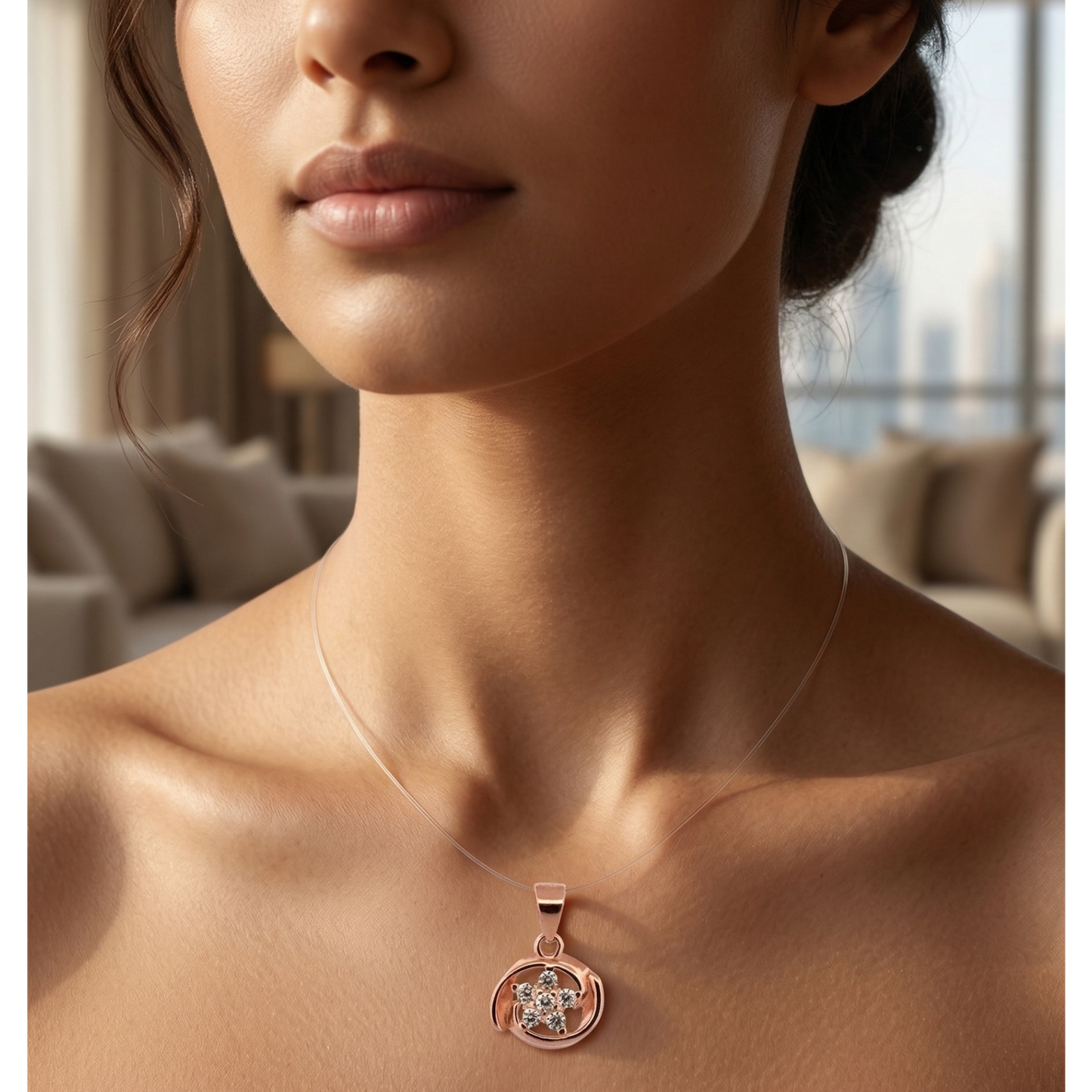 Add White AD Floral Cluster 925 Silver Swirl Pendant | Rose Gold Circle Charm For Office Gifting to the cart