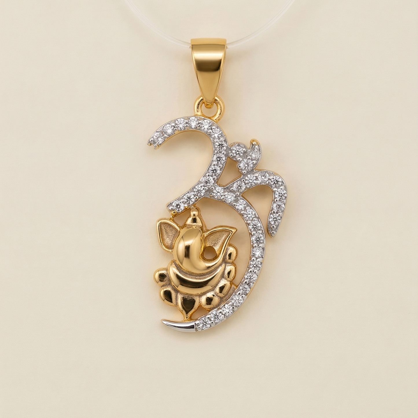 Add Ganesha Om 925 Silver Pendant | Gold-Plated Spiritual Charm For festive Gifting Occasions to the cart