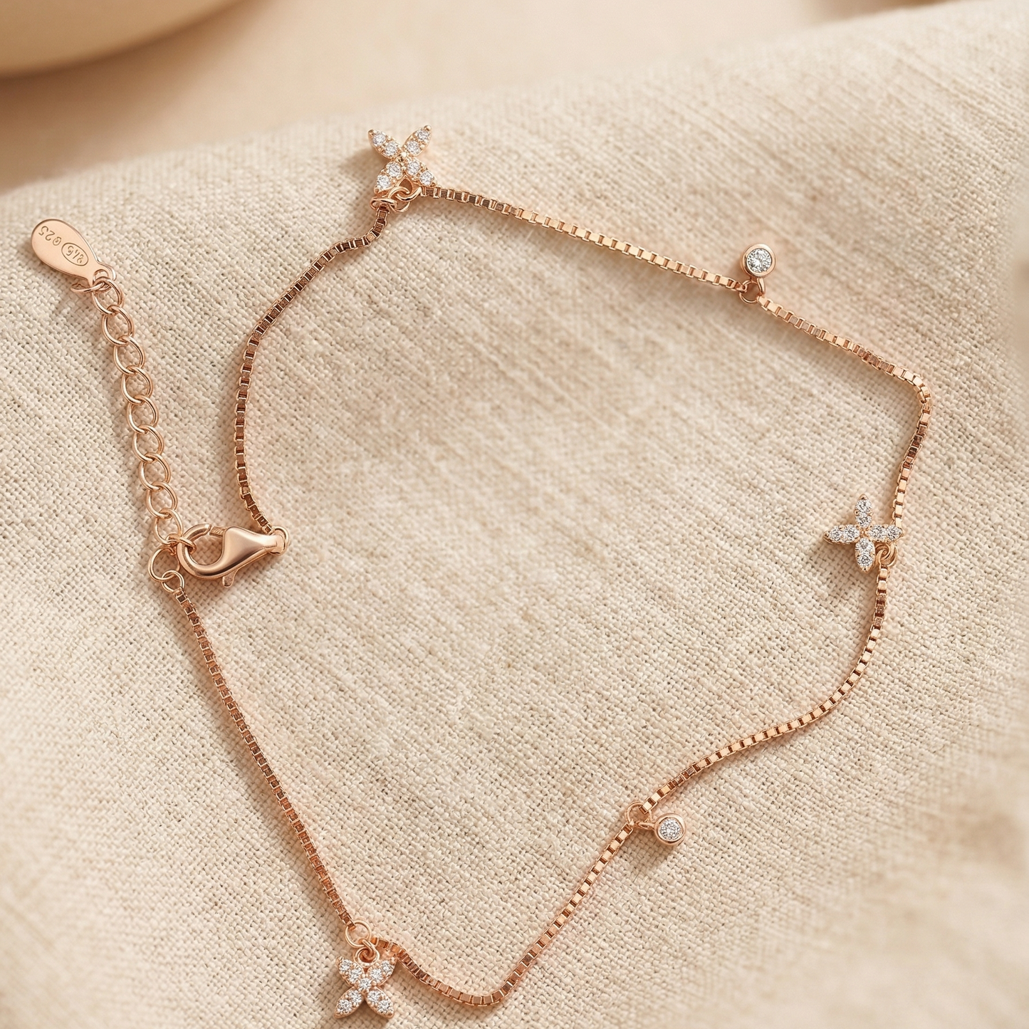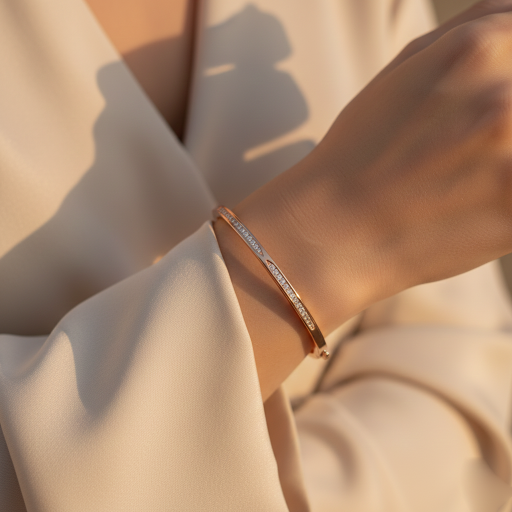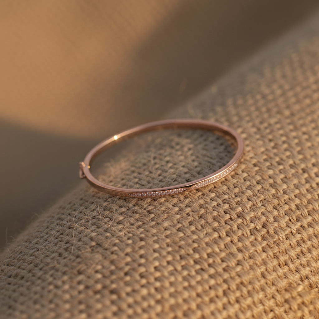 Add White AD Stone Flex Rose Gold 925 Silver Bangle | Sparkling Eternity Circle For Party and Festive wear to the cart