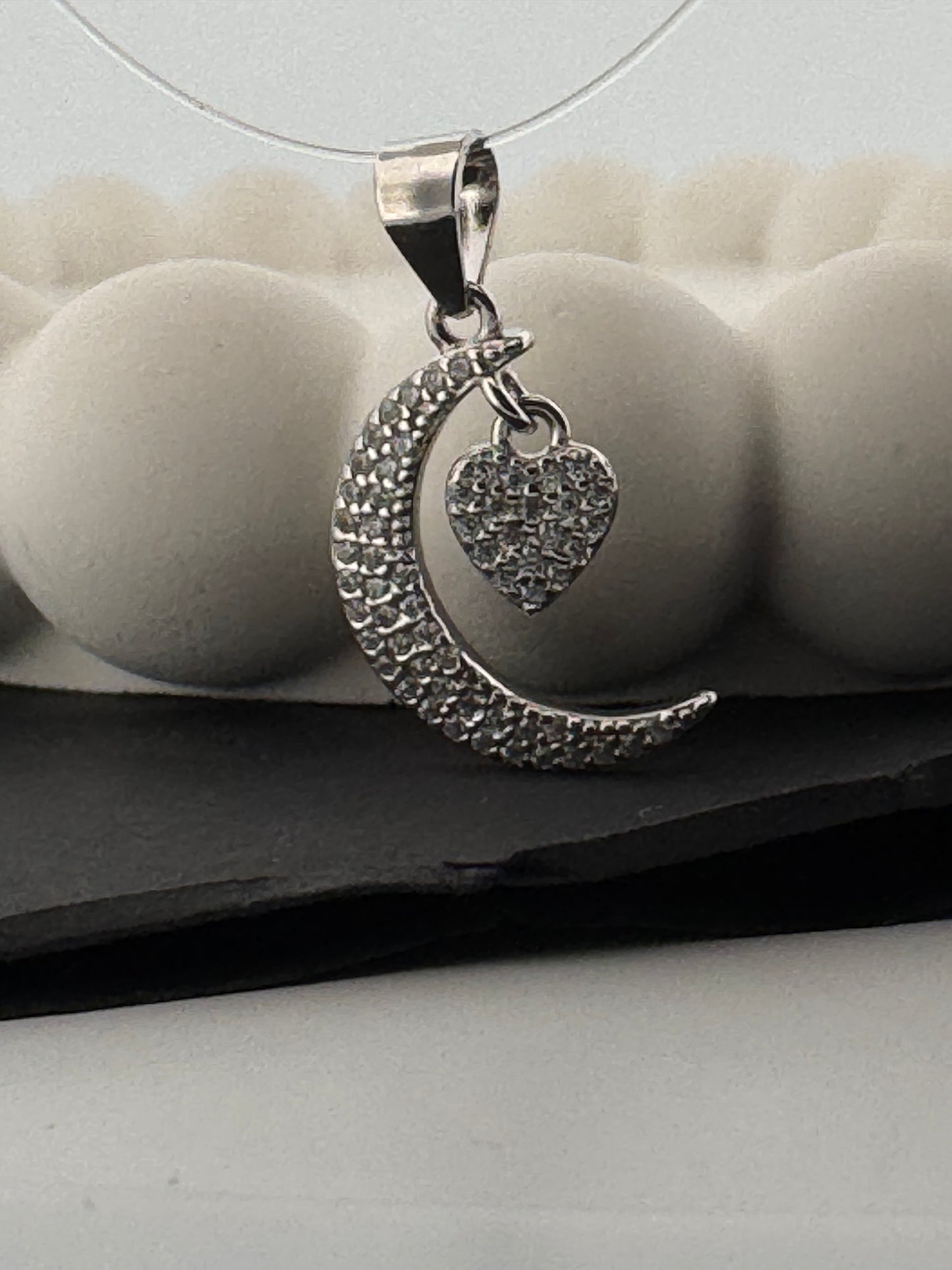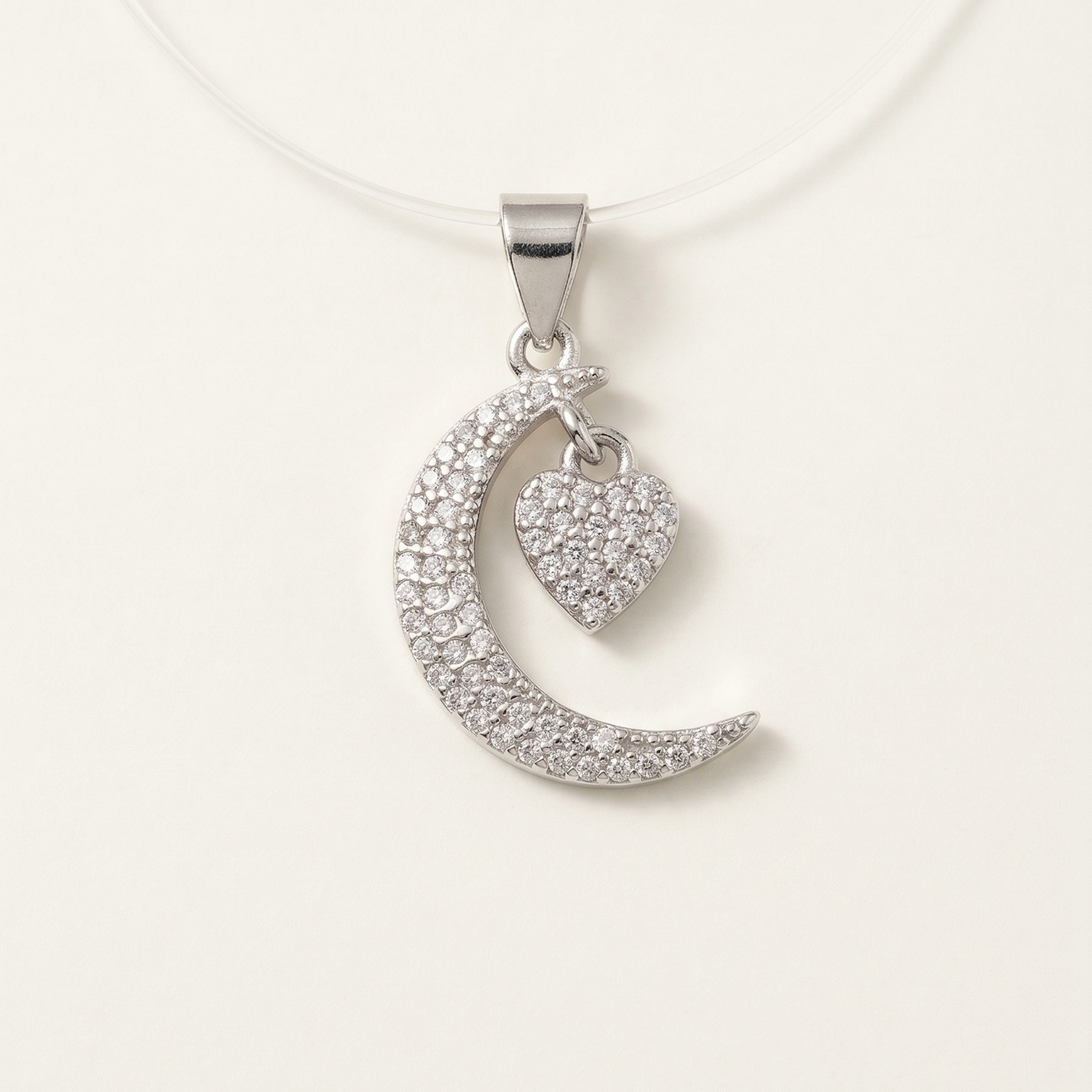 Add White AD Pave Crescent Moon & Heart 925 Silver Pendant | Celestial Charm For Daily Gifting to the cart