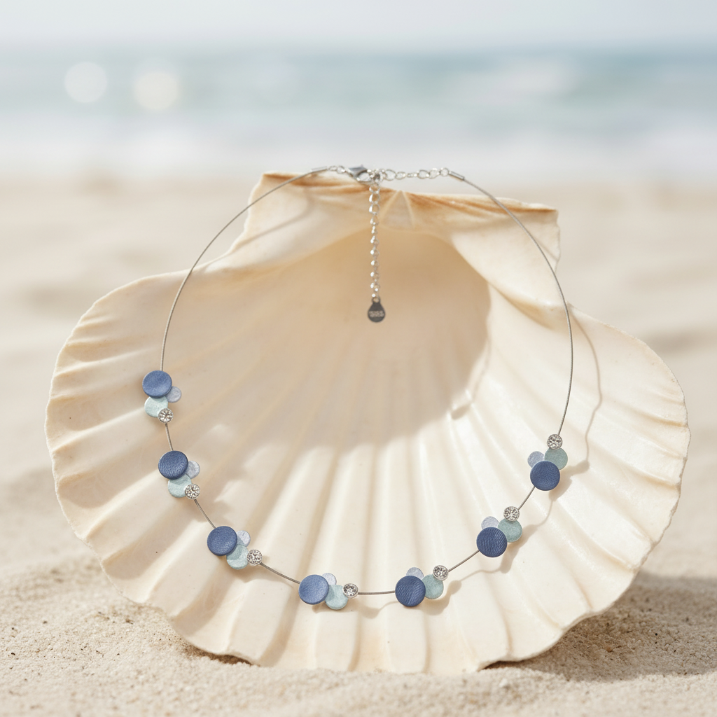 Add Blue Enamel Disc 925 Silver Illusion Station Necklace | Modern Charm For Party Gifting to the cart