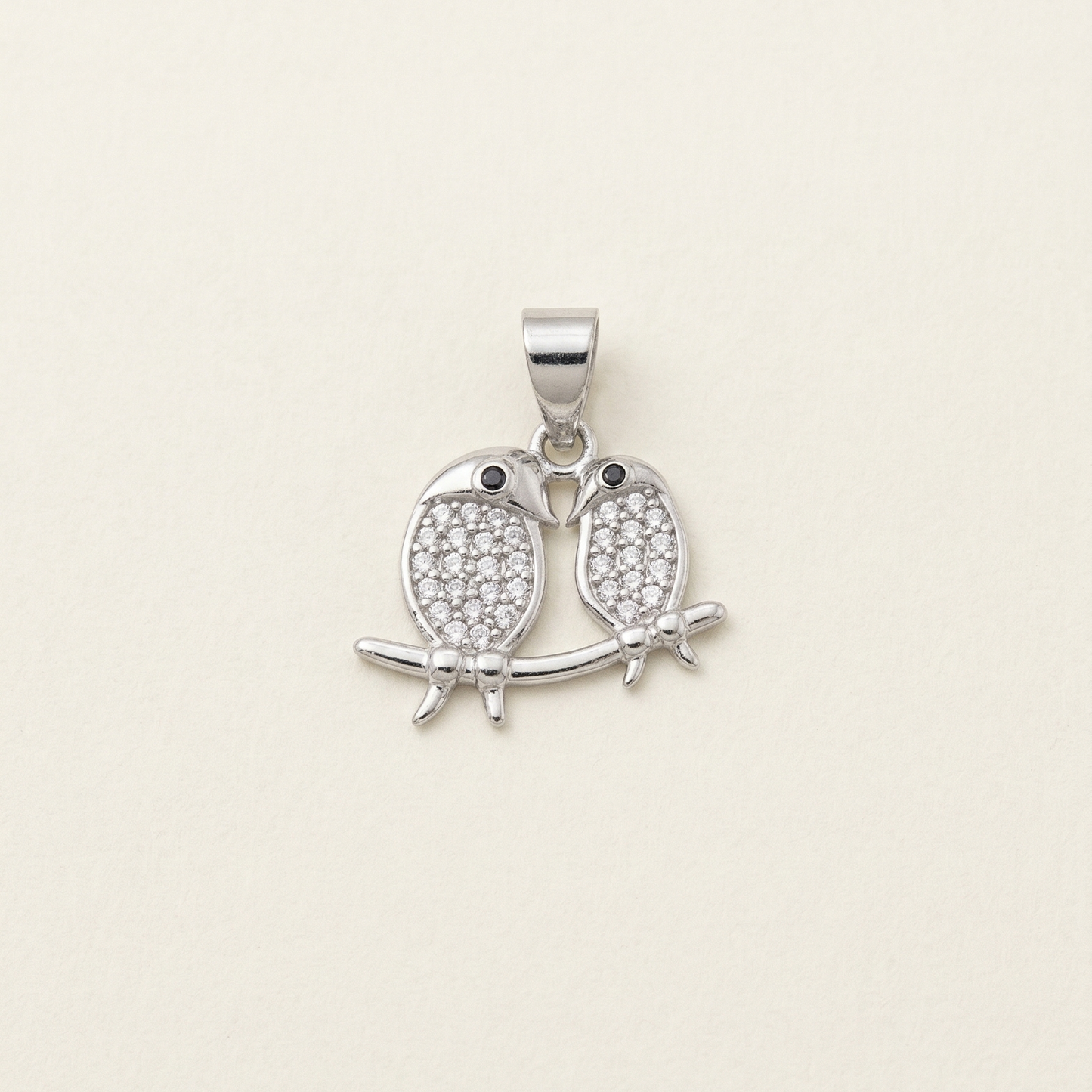 Add White AD Pavé Love Birds 925 Silver Pendant | Rhodium Couple Charm For Gifting Occasions to the cart