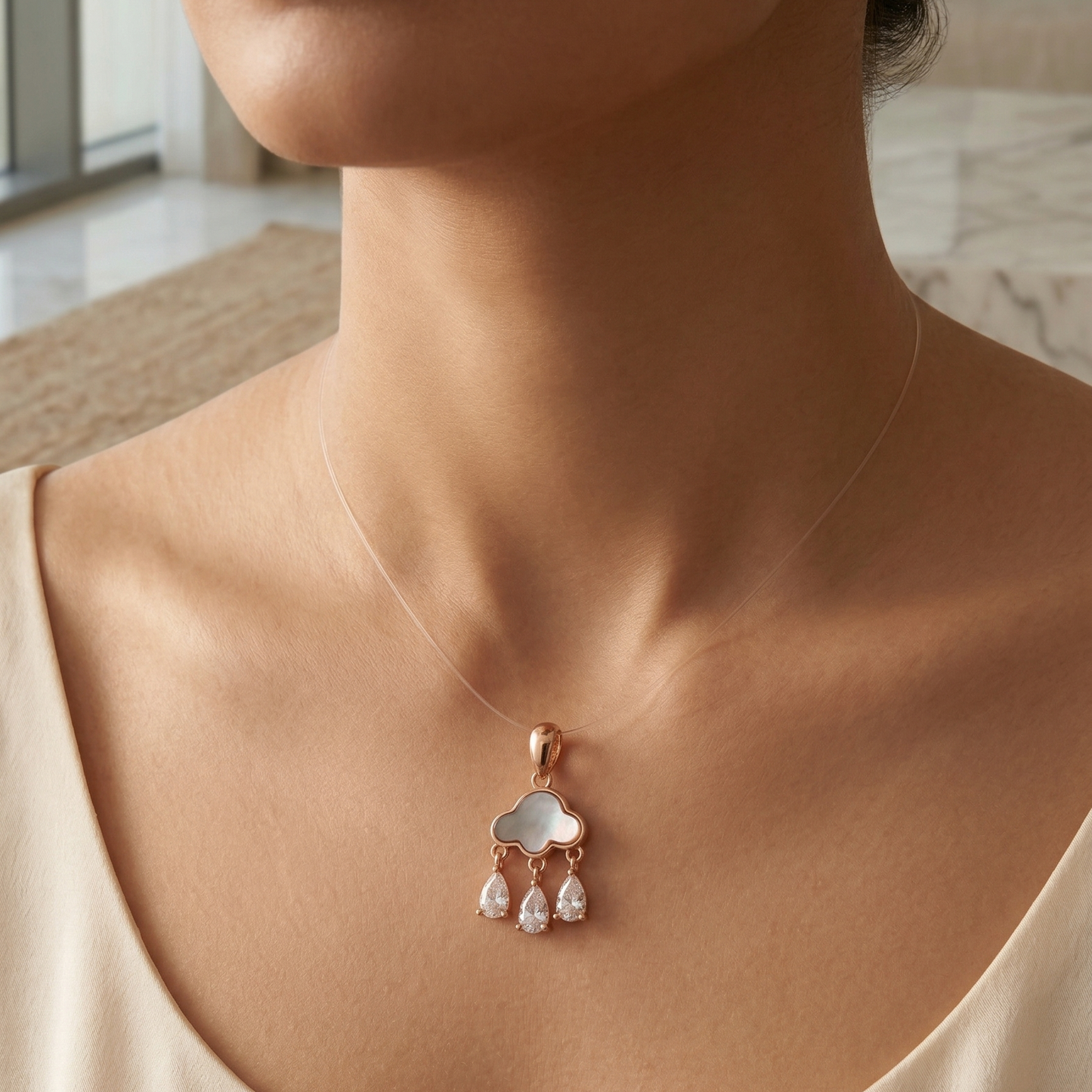 Add Mother of Pearl Cloud & AD Raindrop 925 Silver Pendant | Rose Gold Whimsy For Daily Gifting to the cart