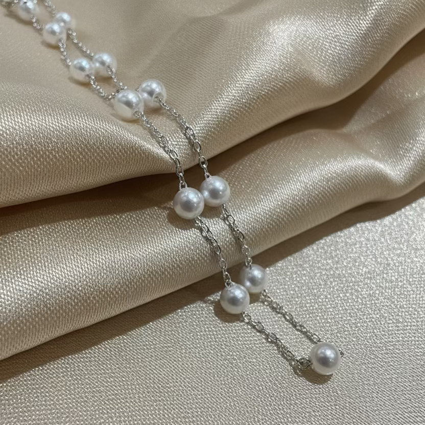 Add Semi-precious Pearl Station 925 Silver Necklace | Rhodium Minimal Elegance For Festive gifting to the cart
