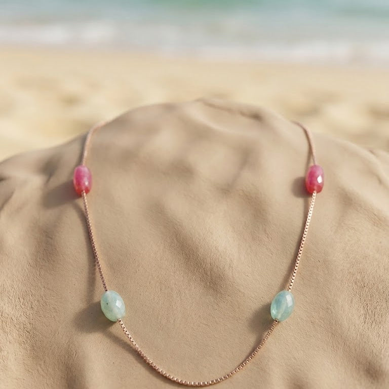 Add Pastel Coral & Green Stone 925 Silver Rose Gold Long Necklace | Colourful Daily Gifting Charm to the cart