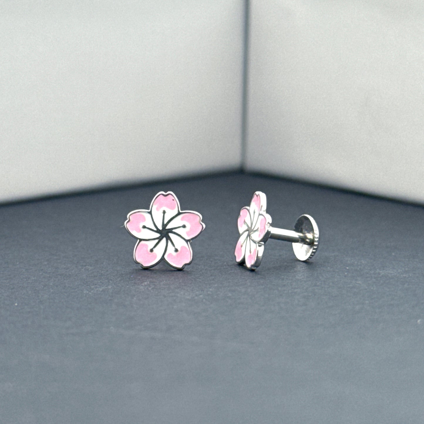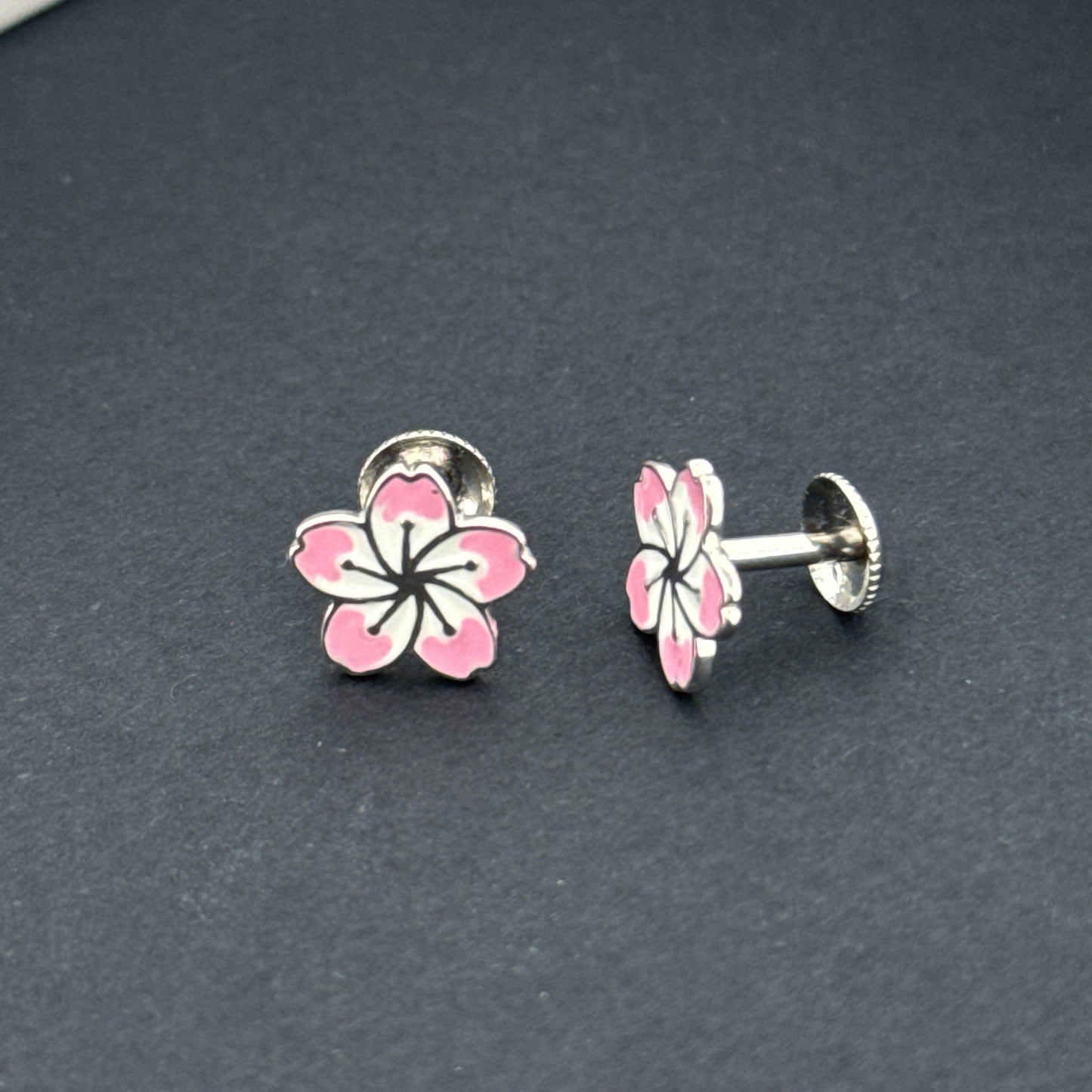 Minimal Pink Flower Stud Earrings | 925 Silver South Screw | Modern Kids Jewelry