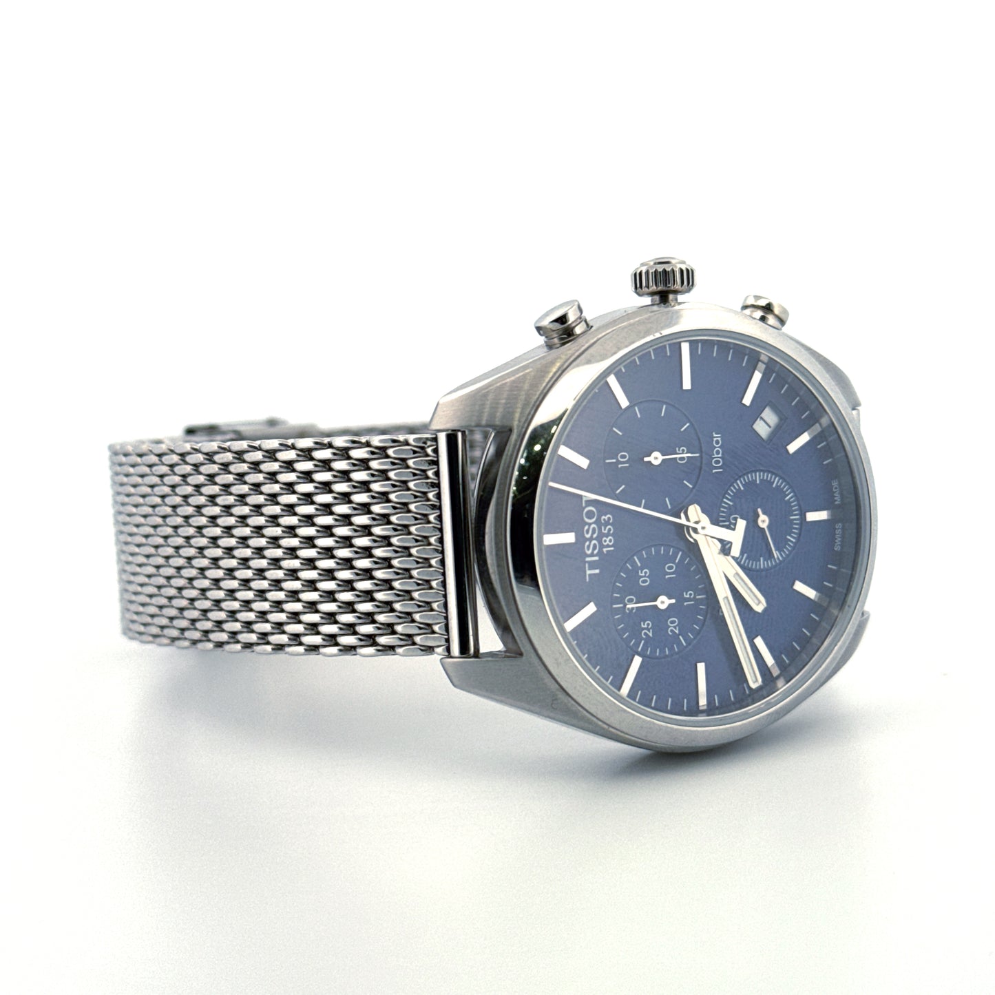 Tissot Chronograph Swiss Made Watch | Navy Blue Dial, Milanese Mesh Bracelet & 10 BAR Water Resistance